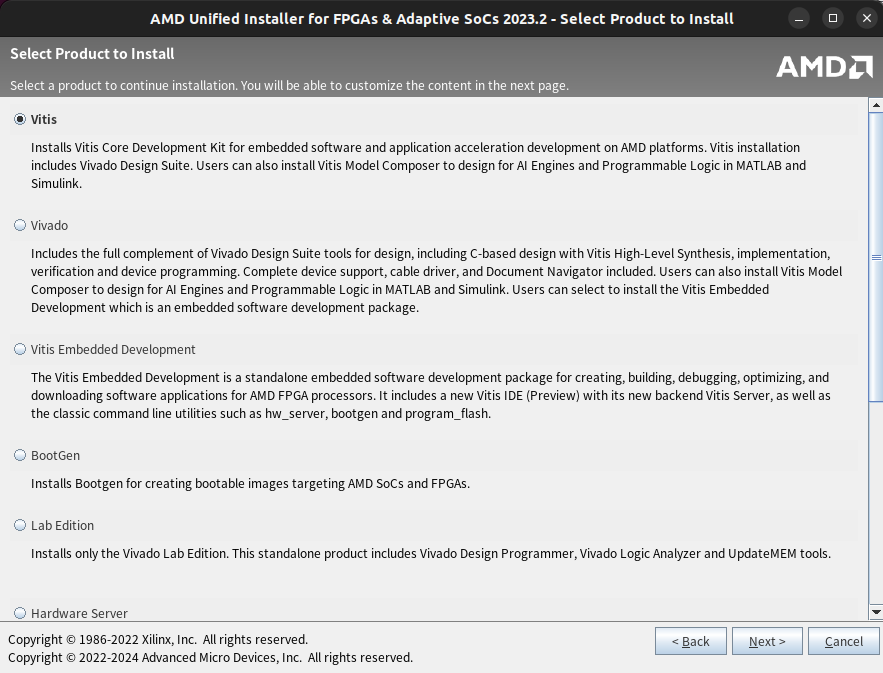 최상단의 Vitis를 선택한다. Vitis를 선택하면 Vivado가 함께 설치된다. 추후 쓸모가 있을지 모르니 함께 설치하자.