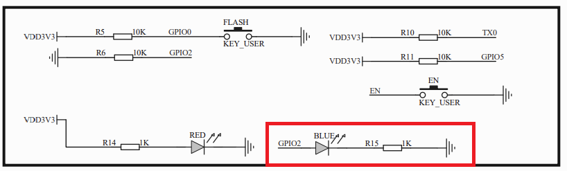 아래 회로도를 보면 해당 LED는 GPIO2번 포트에 연결된 것을 알 수 있다.