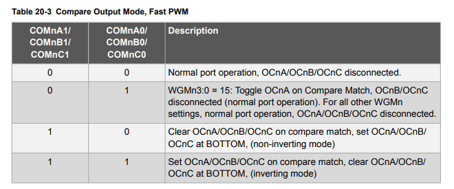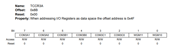 TCCR3A = 0x82; // COM3A1 set, WGM31 set