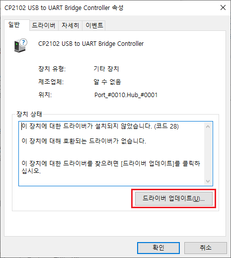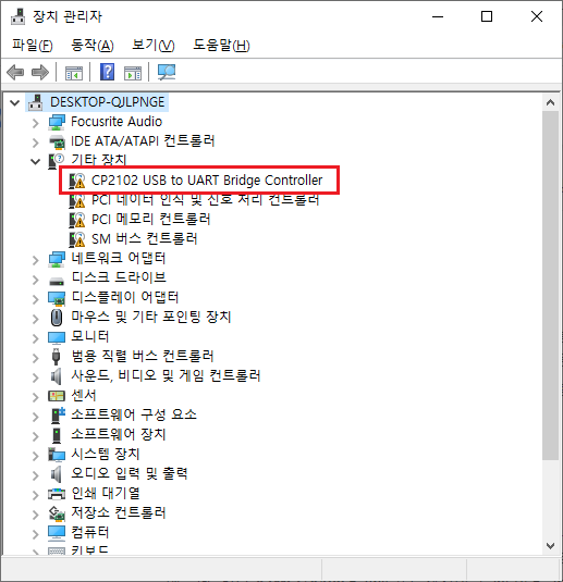 장치관리자에서 위와 같이 드라이버가 잡히지 않는다면 설치를 진행한다.