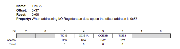 마지막으로 오버플로로 동작하도록 TOIE (Timer/Counter1 Overflow Interrupt Enable) 설정을 해준다.